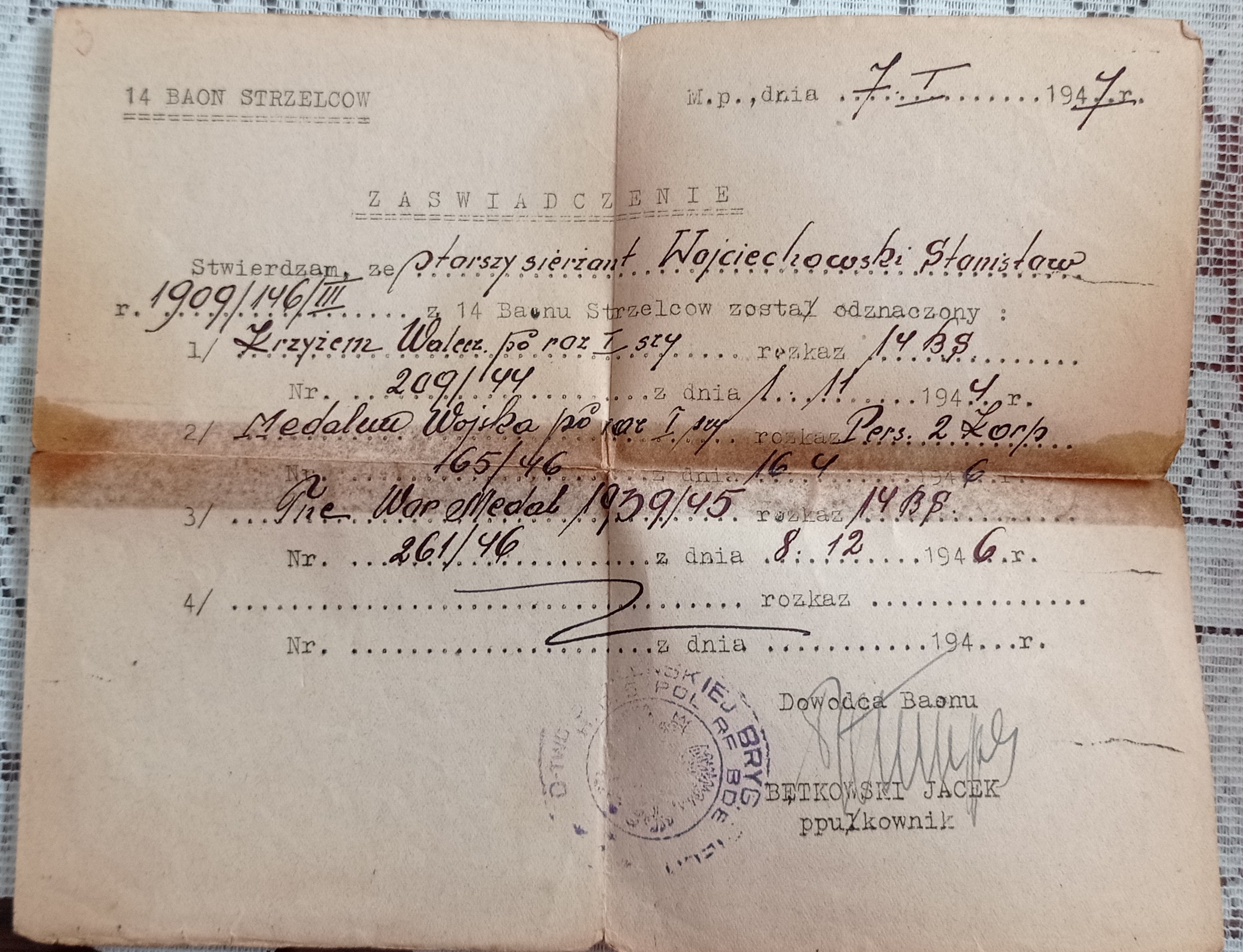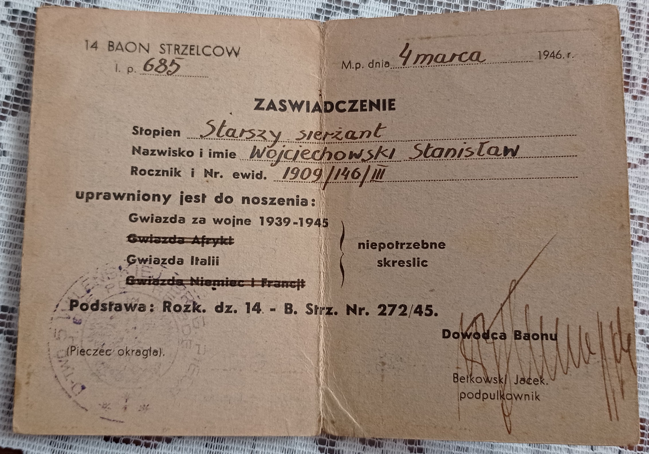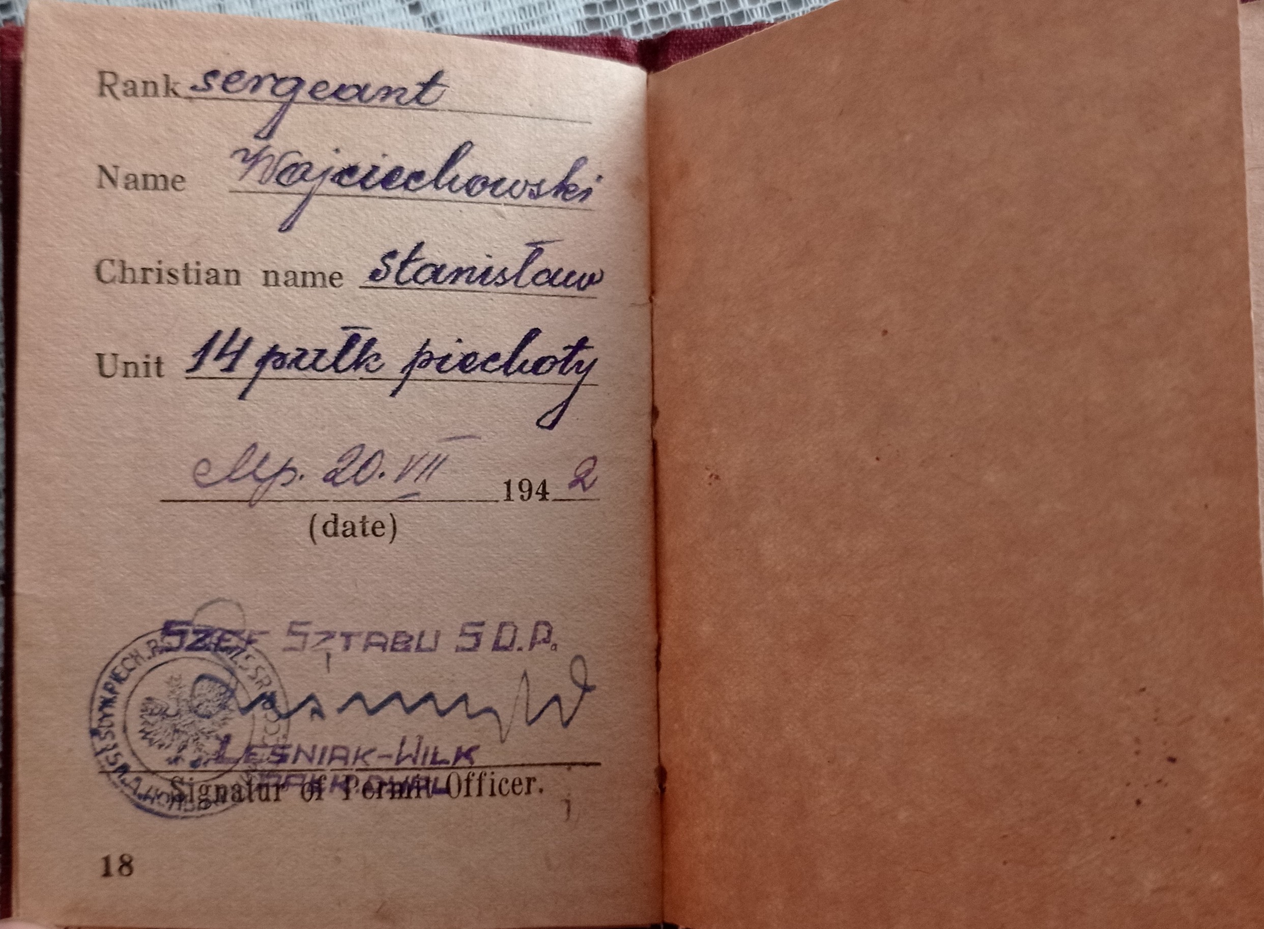 Archiwum rodzinne - st.sierż. Wojciechowskiego Stanisława