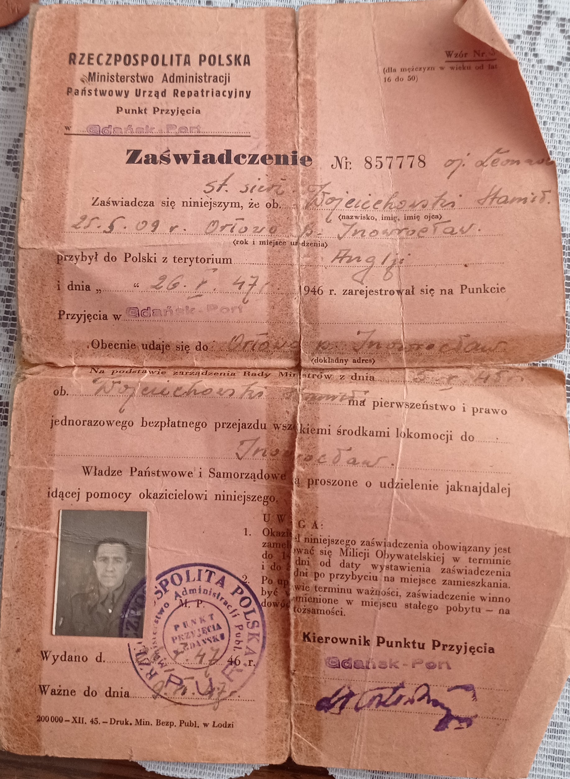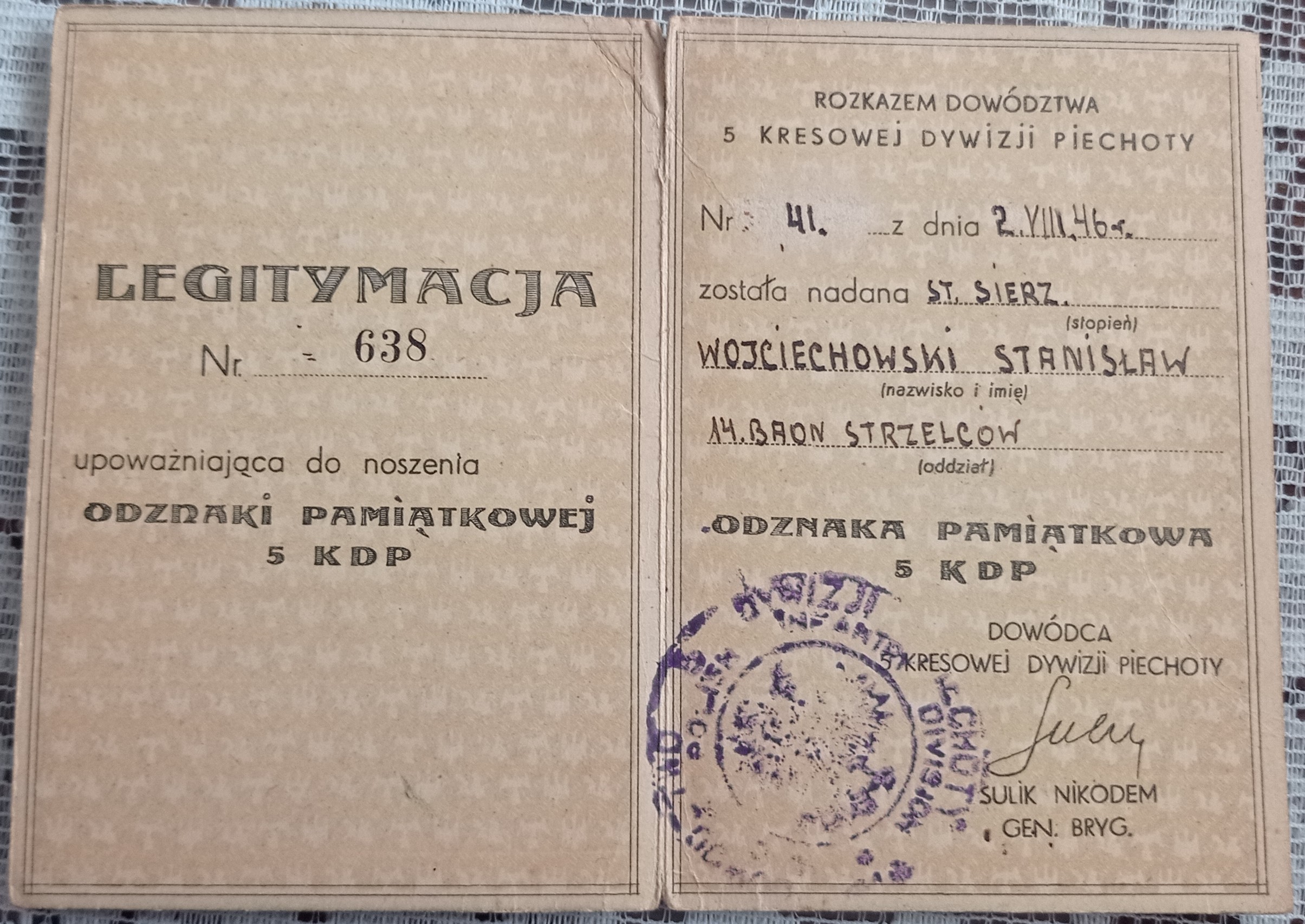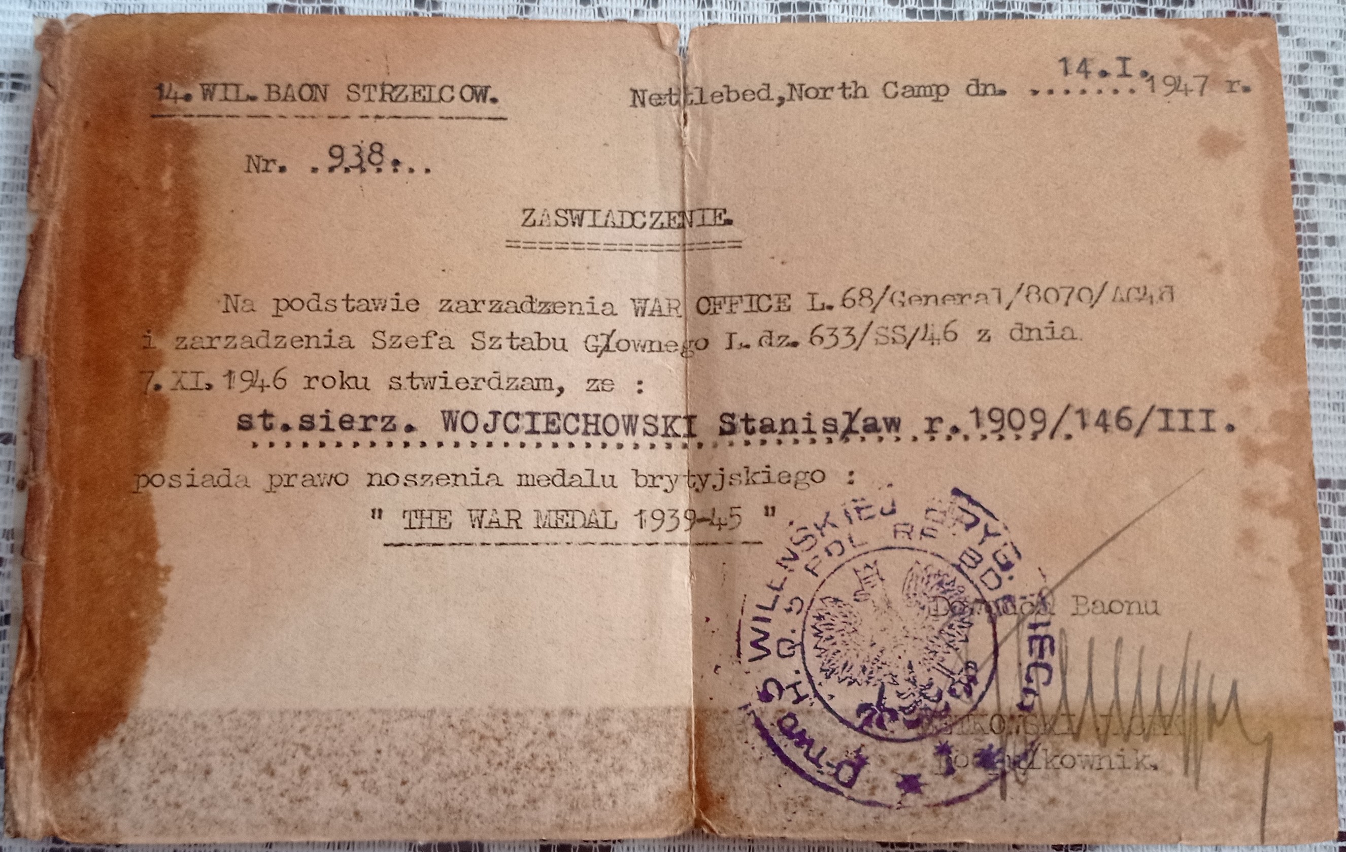 Archiwum rodzinne - st.sierż. Wojciechowskiego Stanisława