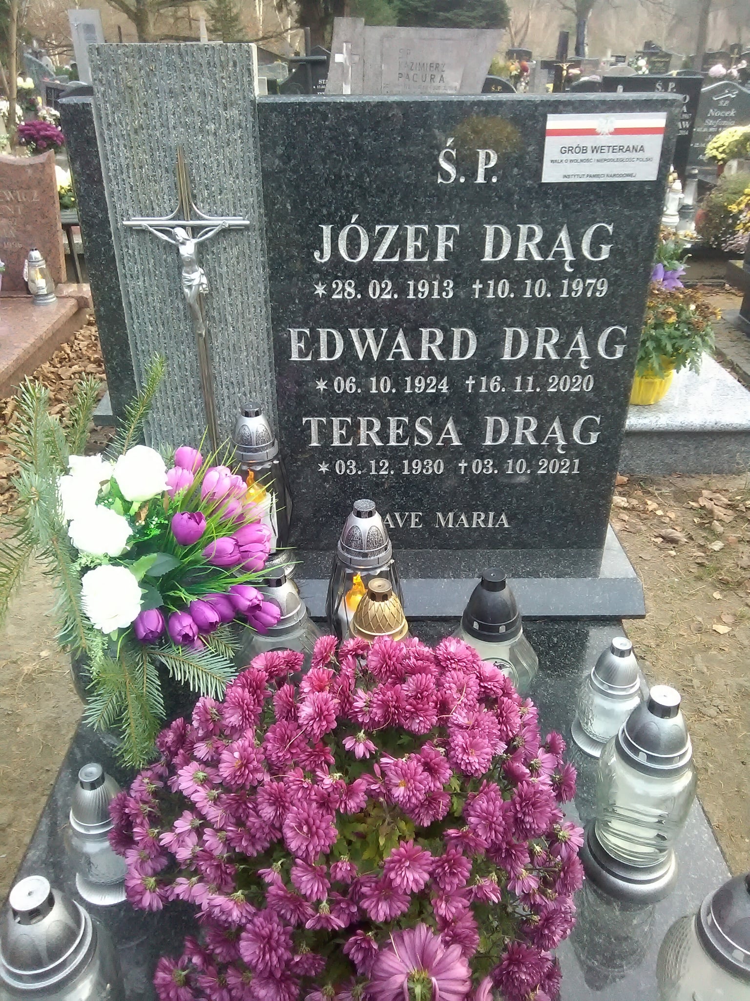 Grób wpisany do Ewidencji grobów weteranów walk o Wolność i Niepodległość Polski