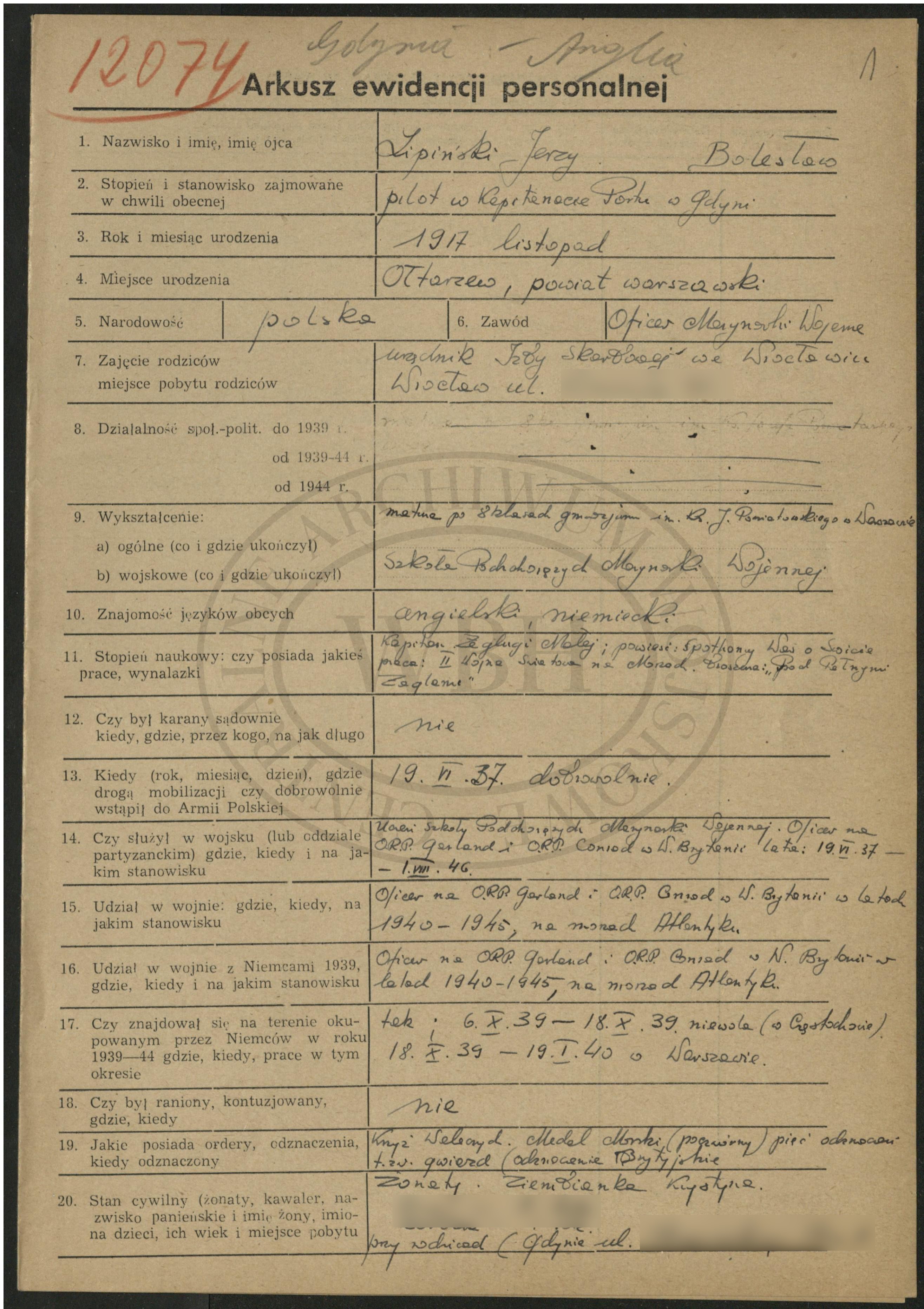 Data urodzenia: 19.11.1917