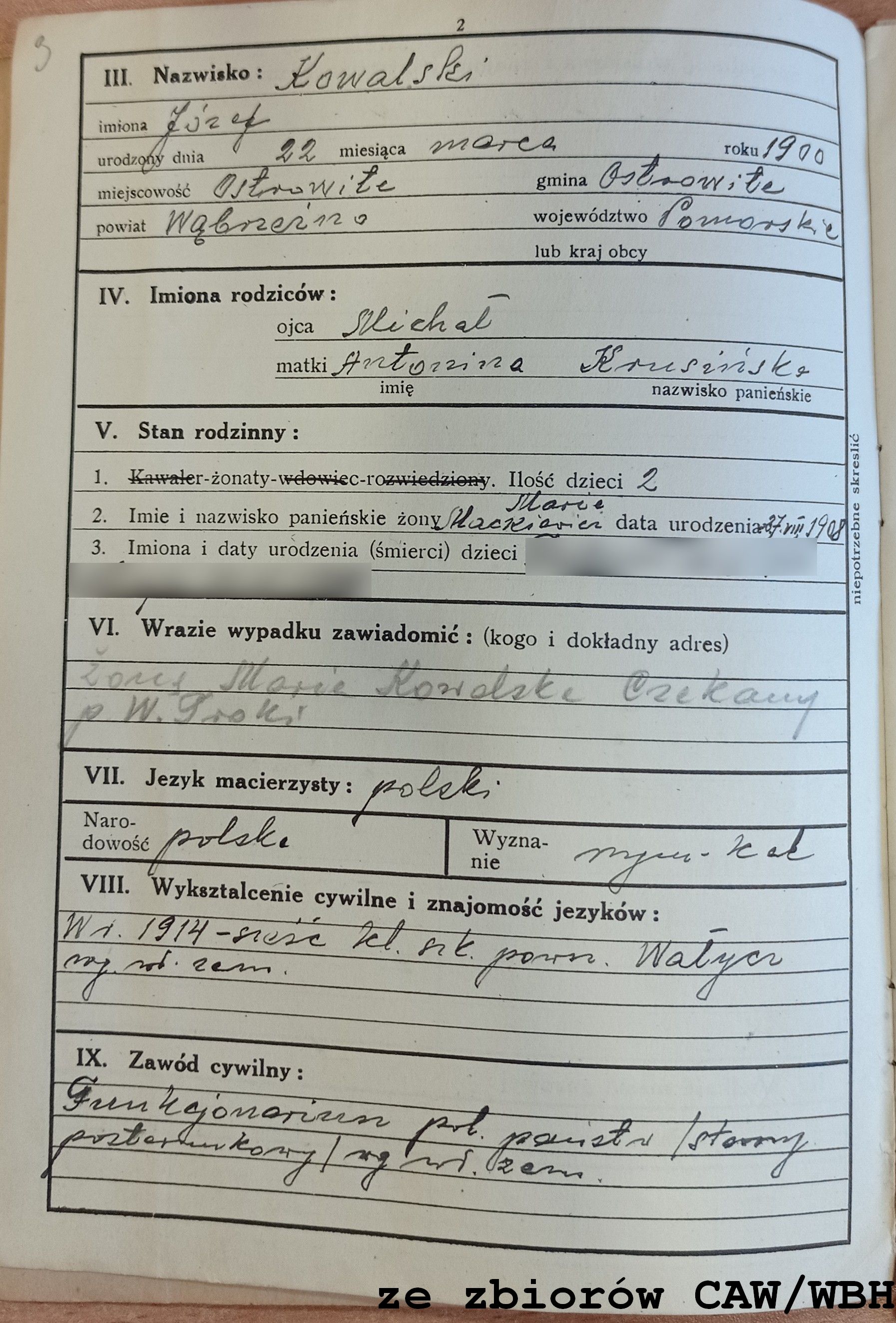 Miejsce urodzenia: Ostrowite, pow. Wąbrzeźno