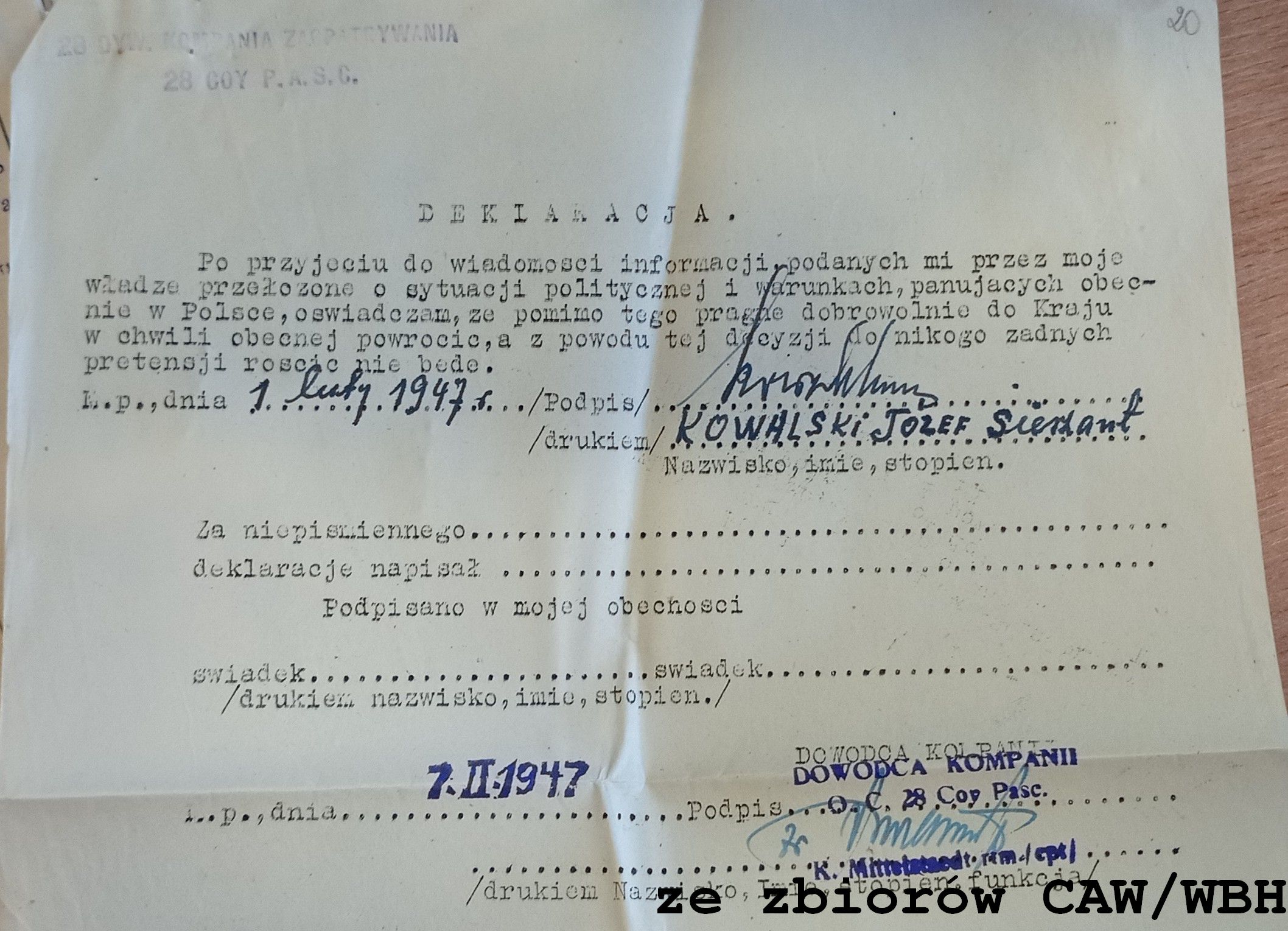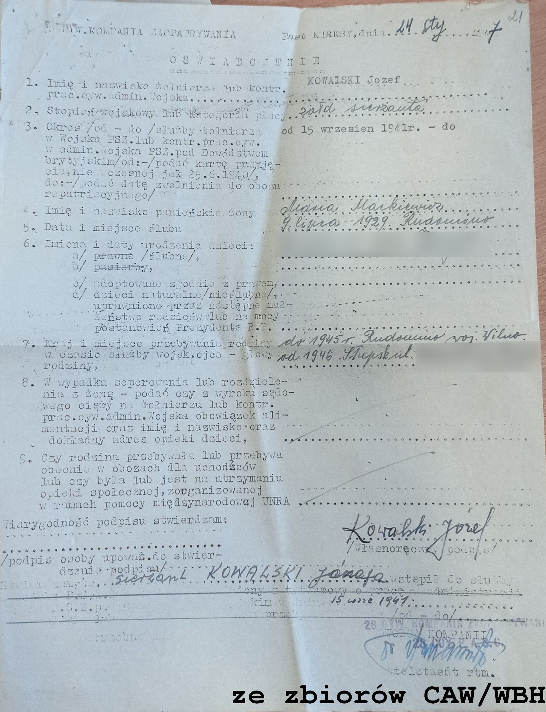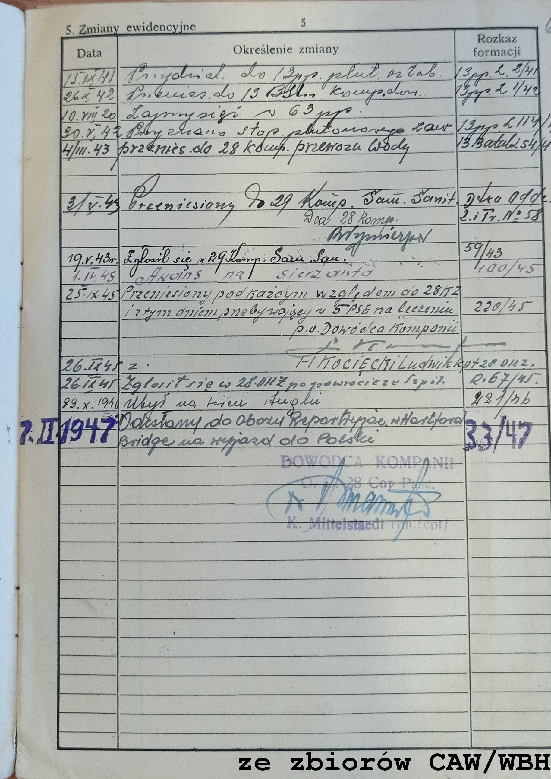 Przydział, jednostka: 29 Kompania Samochodów Sanitarnych